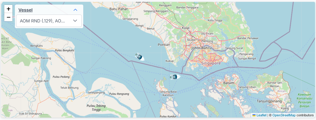 - Vessel Markers: Blue ship icons showing real-time vessel locations