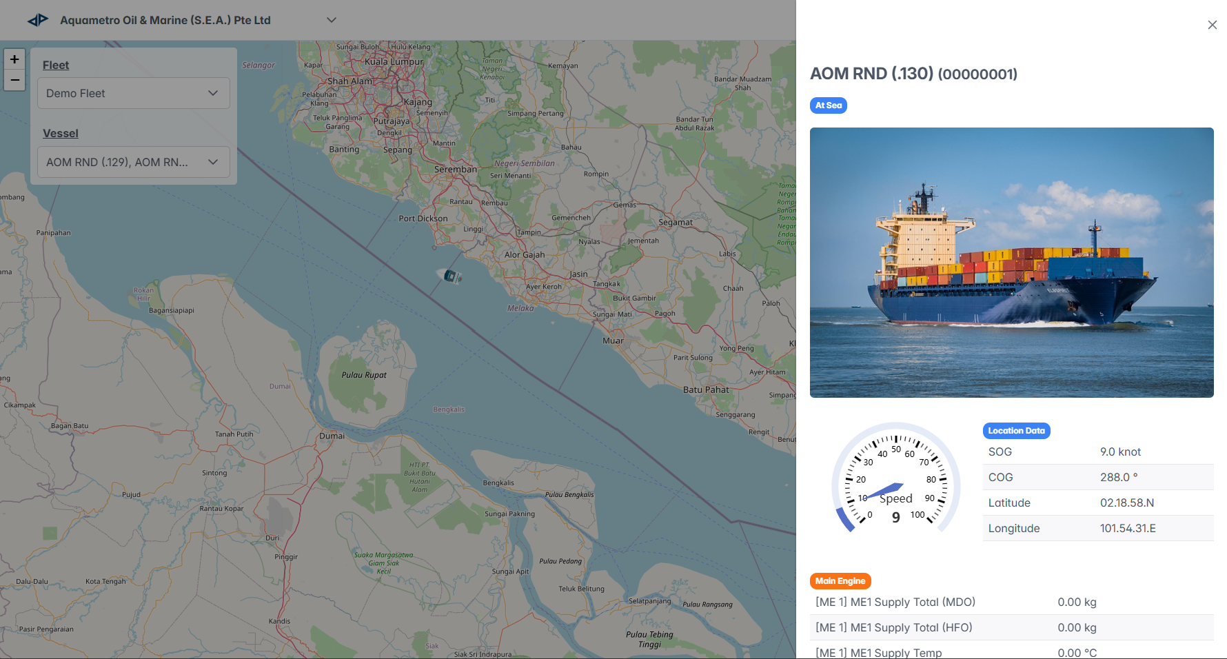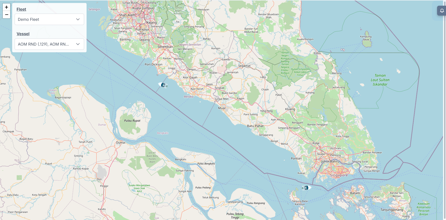 The Map Navigation page provides a real‑time view of vessel positions and recent tracks on an interactive world map. Use it to monitor fleet status, locate vessels, and visually follow their latest sailing paths.