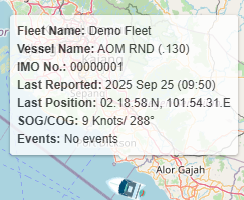 Hovering over a vessel icon displays a compact popup with the vessel's most recent information: