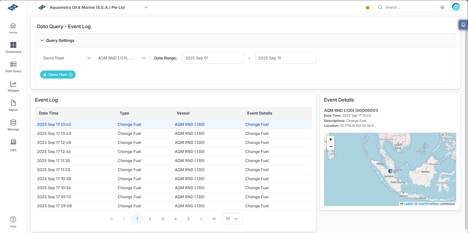 The Event Log module provides comprehensive tracking and monitoring of vessel activities and events within the AOMP. This feature allows users to query, filter, and analyze historical vessel events for operational insights and compliance reporting.