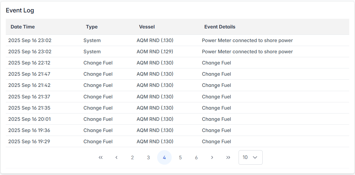 The Event Log module enables users to track, filter, and analyze vessel activities and events for operational monitoring and compliance.
